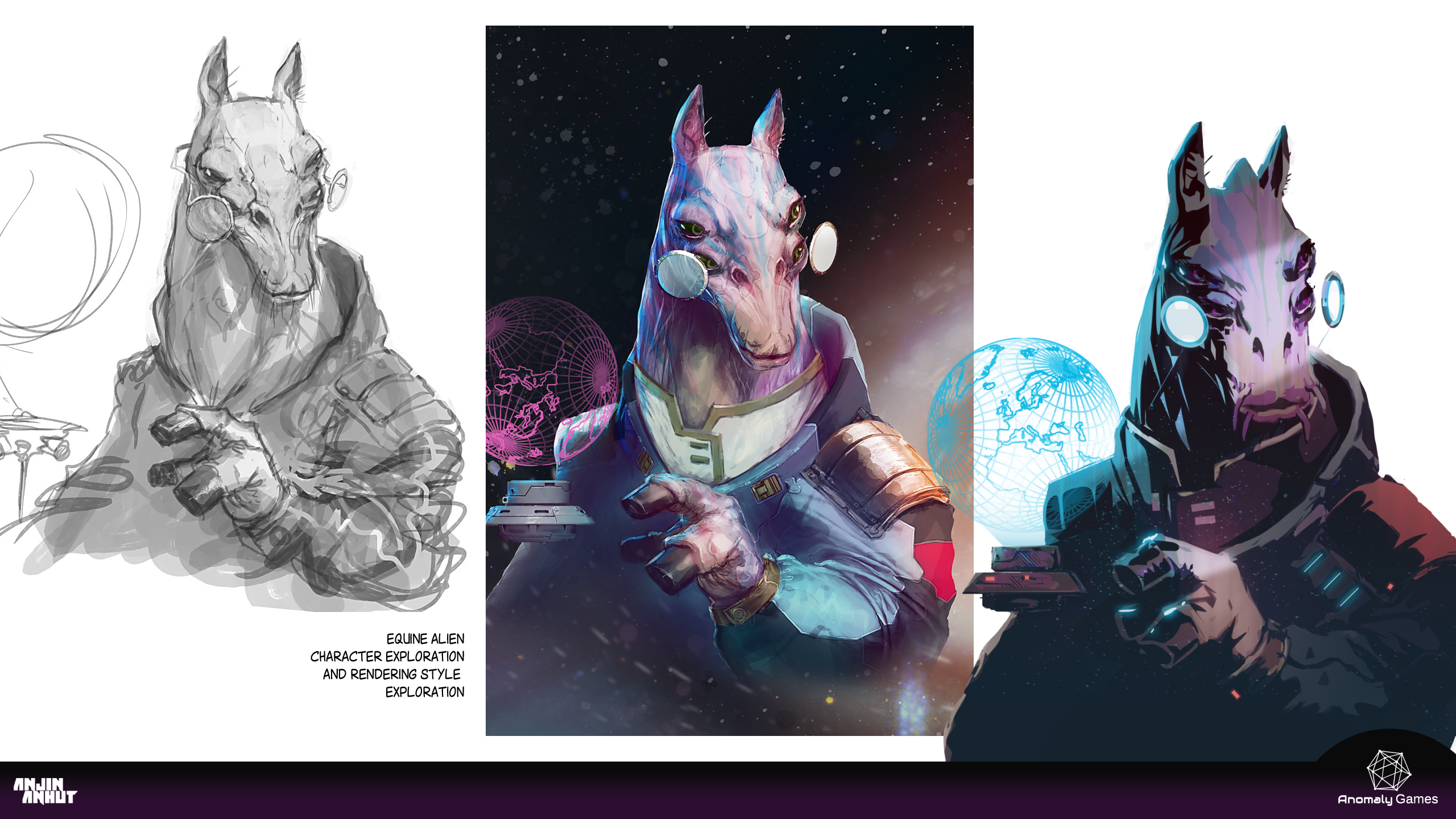 Together with their game designers and UI artists, we developed the visual style of Anomaly Games‘ Fermi Paradox. I was responsible for developing the illustration style of the game and also creating benchmark alien designs to define how hard we lean into space sci-fi.