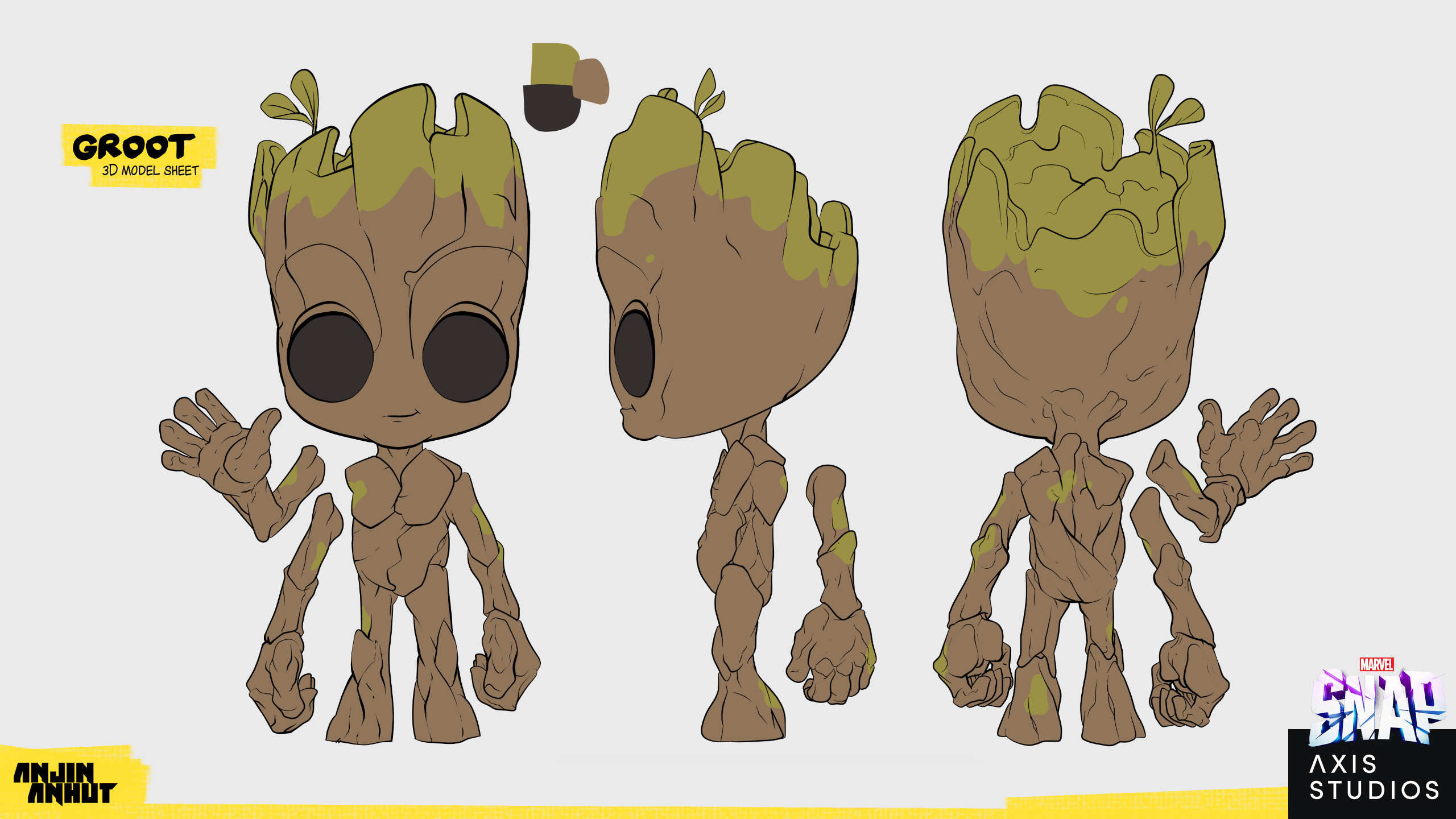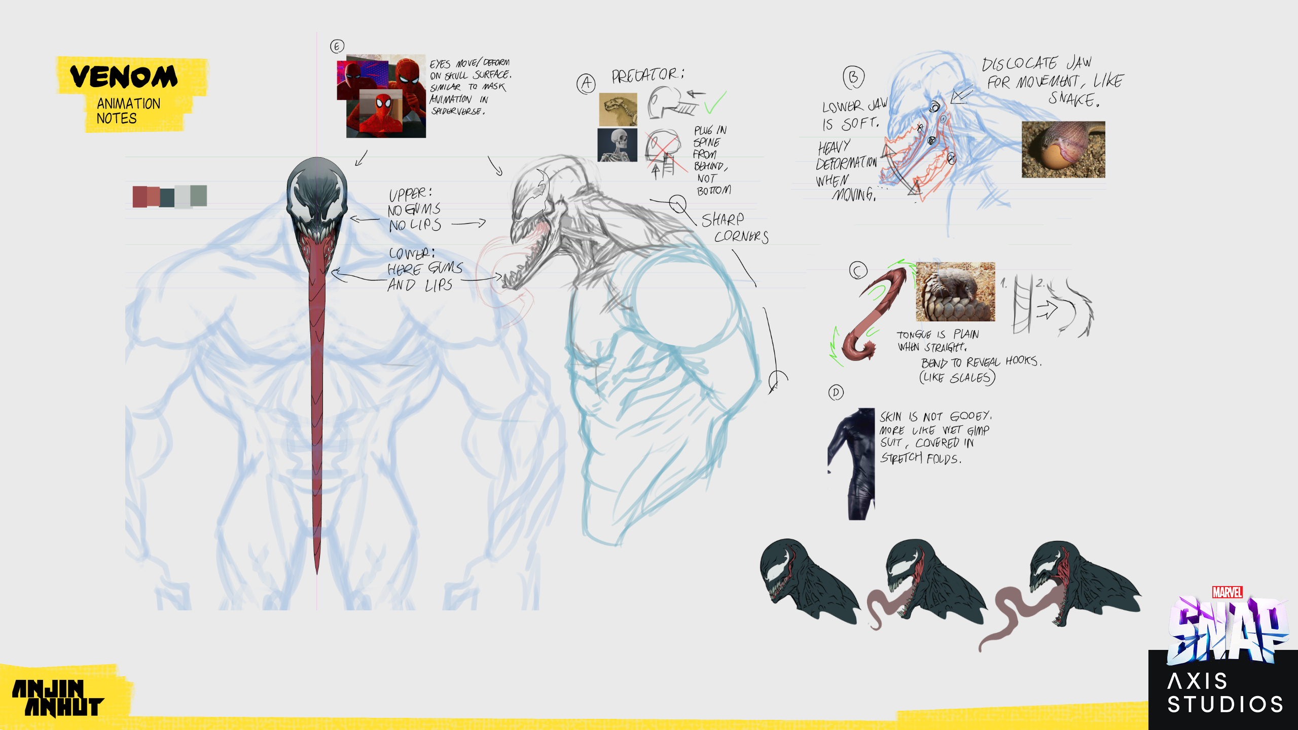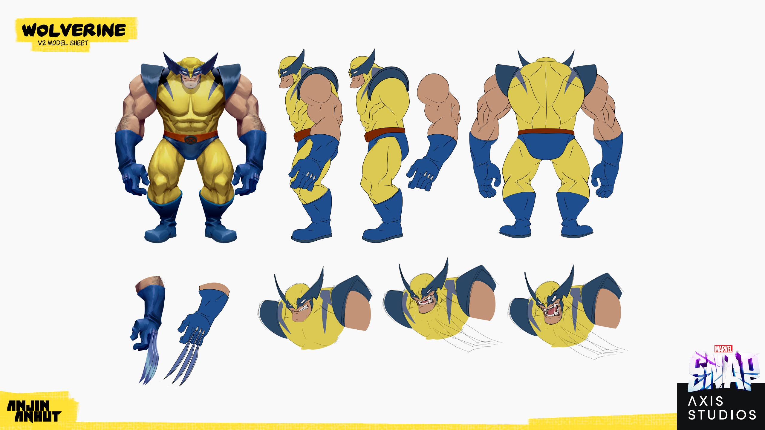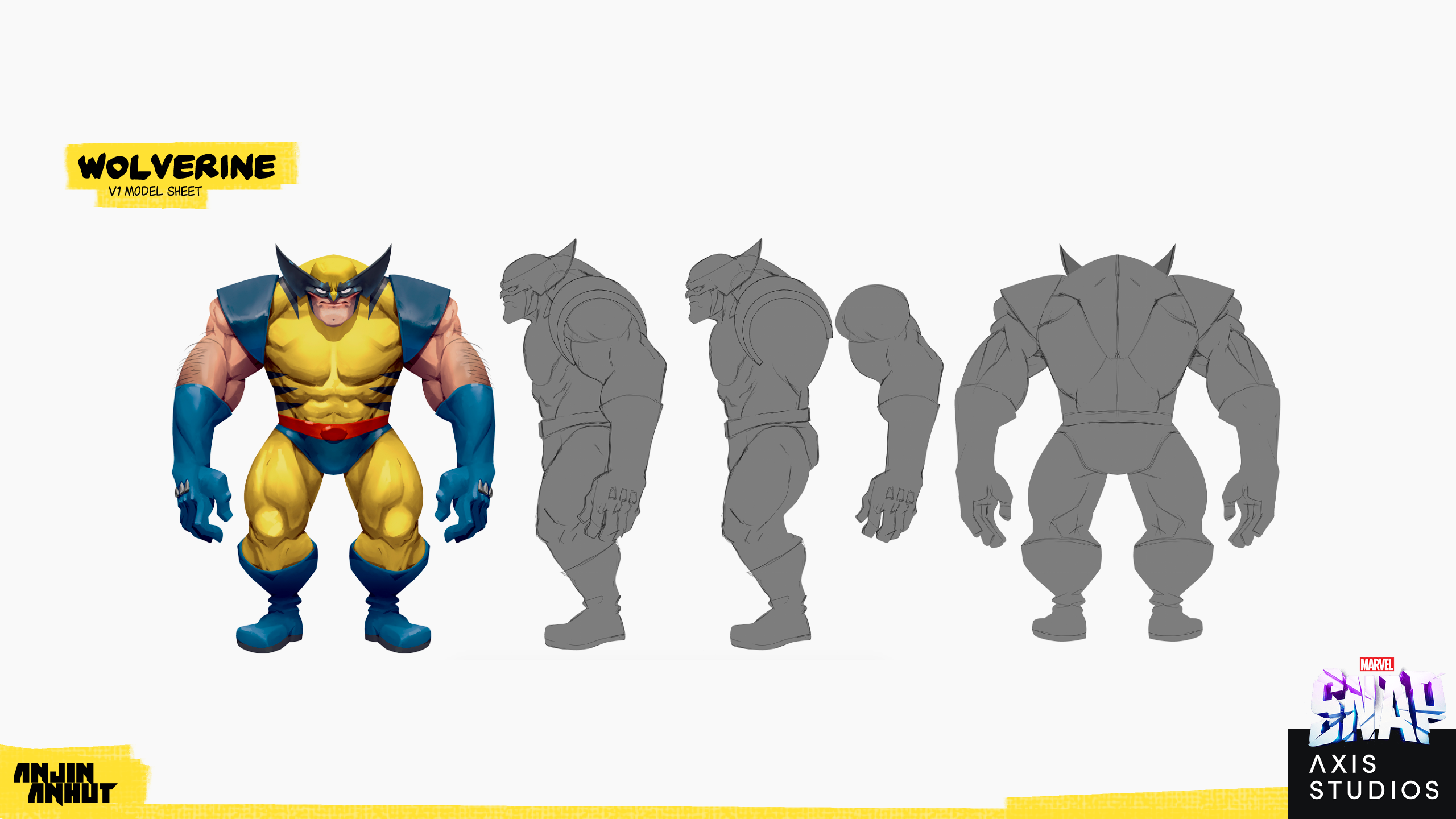 Images below are character designs and animation notes for their Marvel Snap! cinematic trailer, as well as screenshots with some of the designs realized by our 3D artists in the final film.