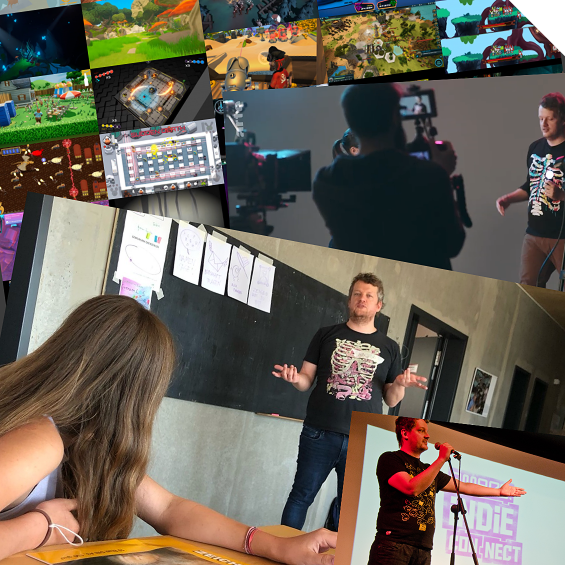 I have nine years of teaching game design and game art classes, and serving as student project supervisor for Games Academy. I also frequently gave workshops and courses in other institutes, for grown-ups and kids, and do public speaking. My expertise on games and other pop-culture media was used in several film and tv productions, documentaries, as well as culture and community events. I‘m a published author on comics and video games.So, yeah, you can contact me for making games, comics and animation. And you can contact me for making media productions and realizing educational projects and events about games, comics and animation as well.